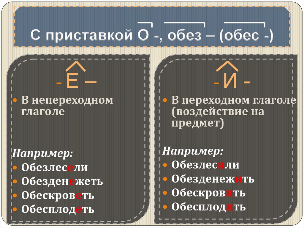 С приставкой О -, обез – (обес -)-Е –