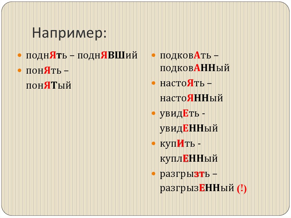 В инфинитиве и в прошедшемвремени