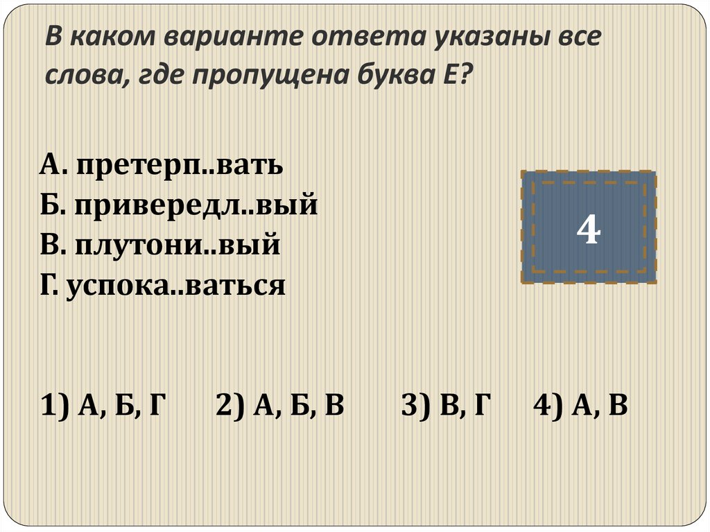 4В каком варианте ответа