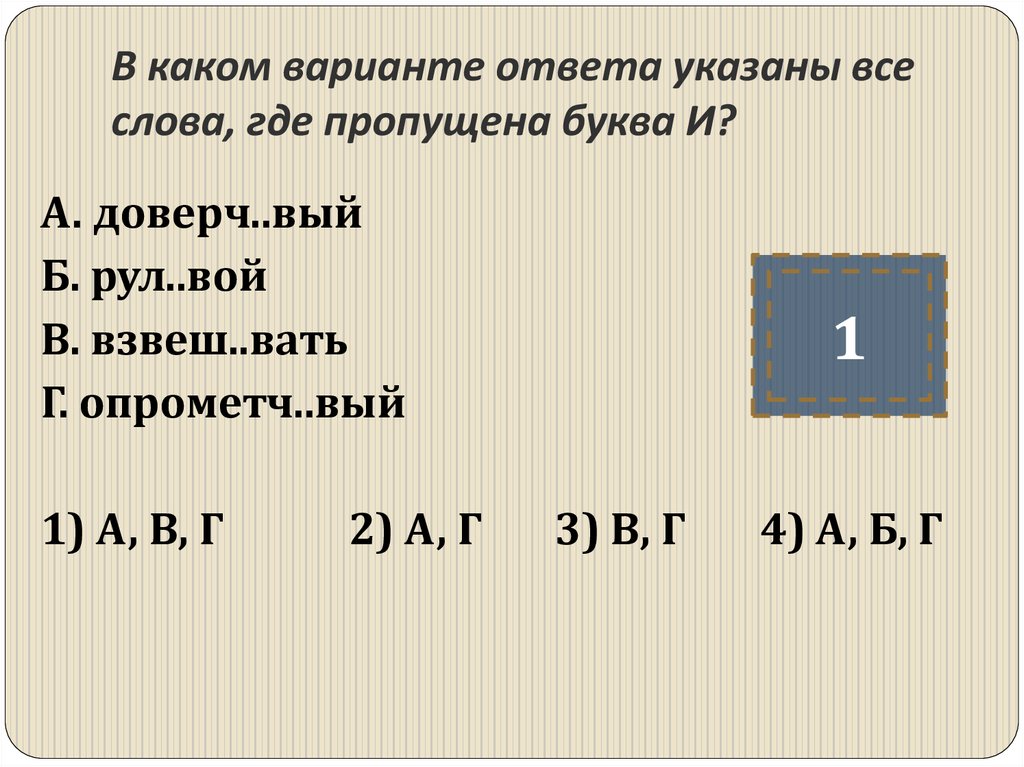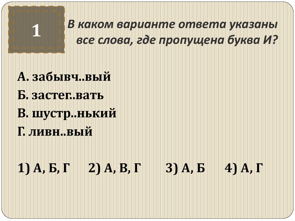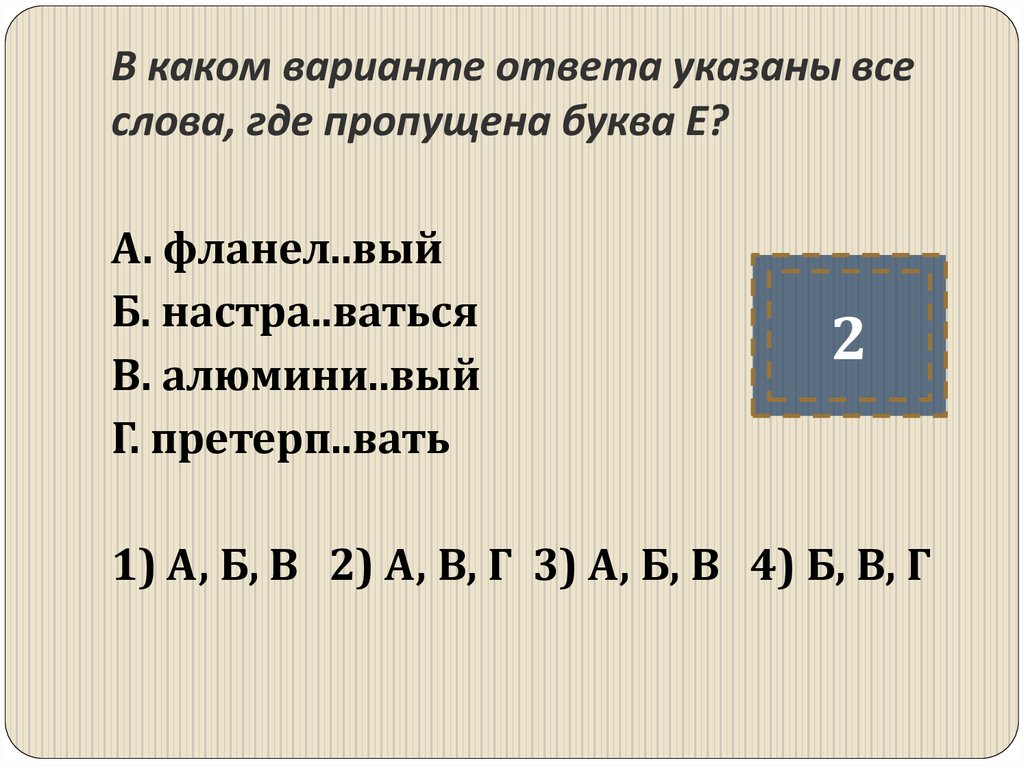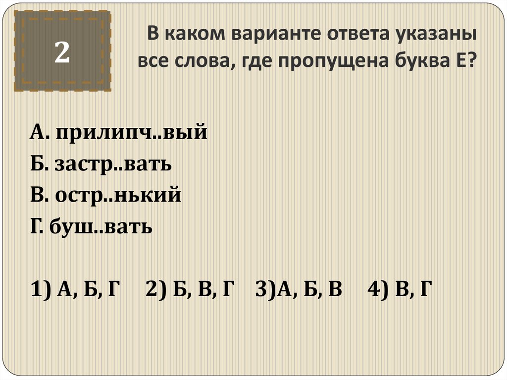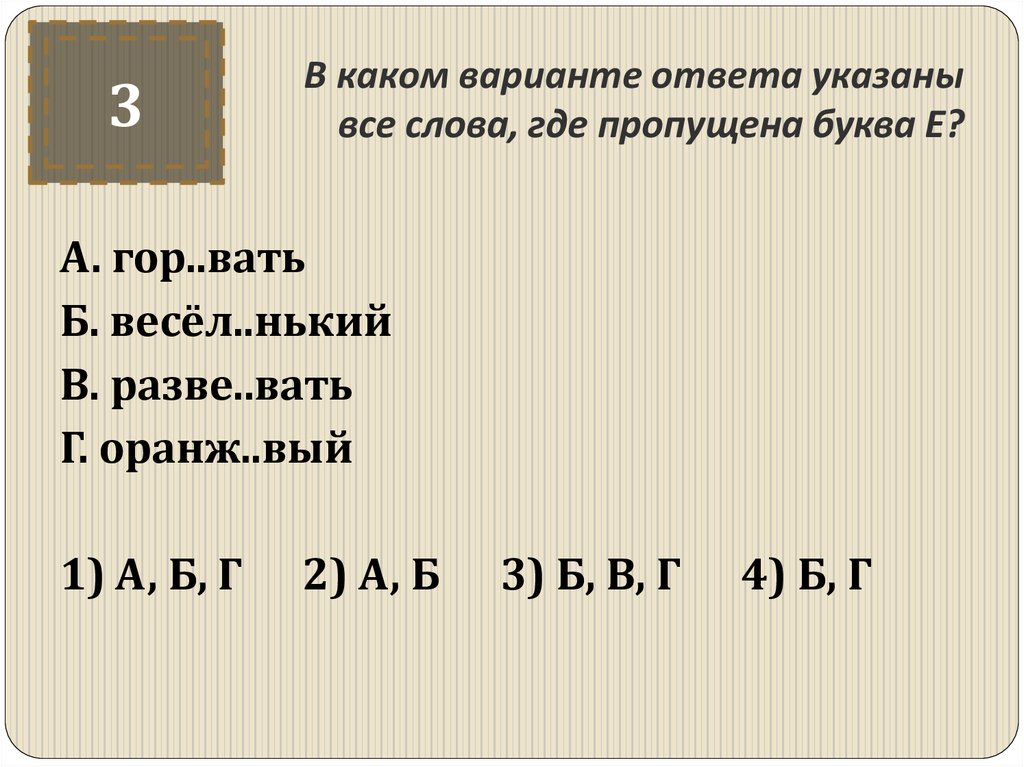 2) Б, В, Г 3)А, Б, В