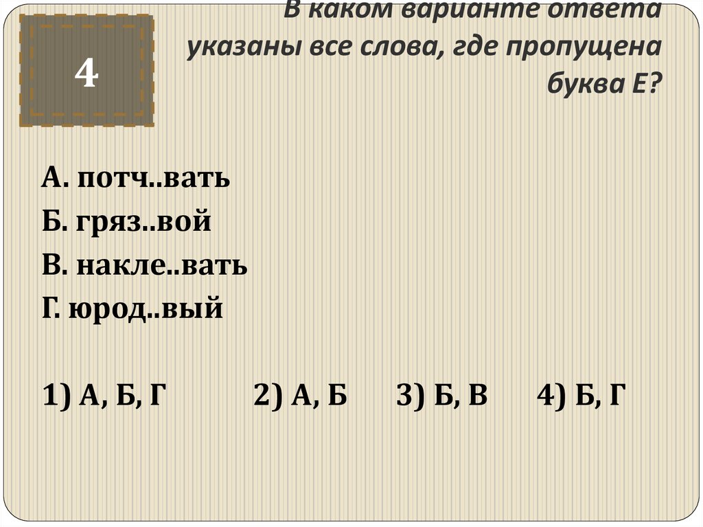 4) Б, Г