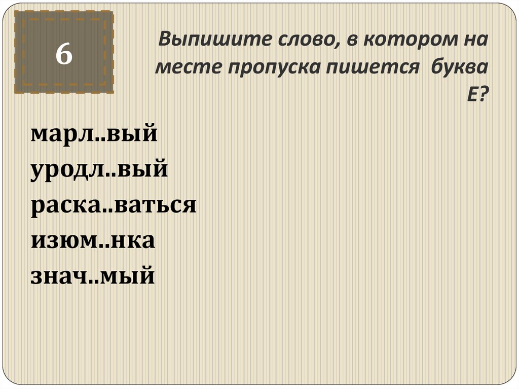 6Выпишите слово, в котором на