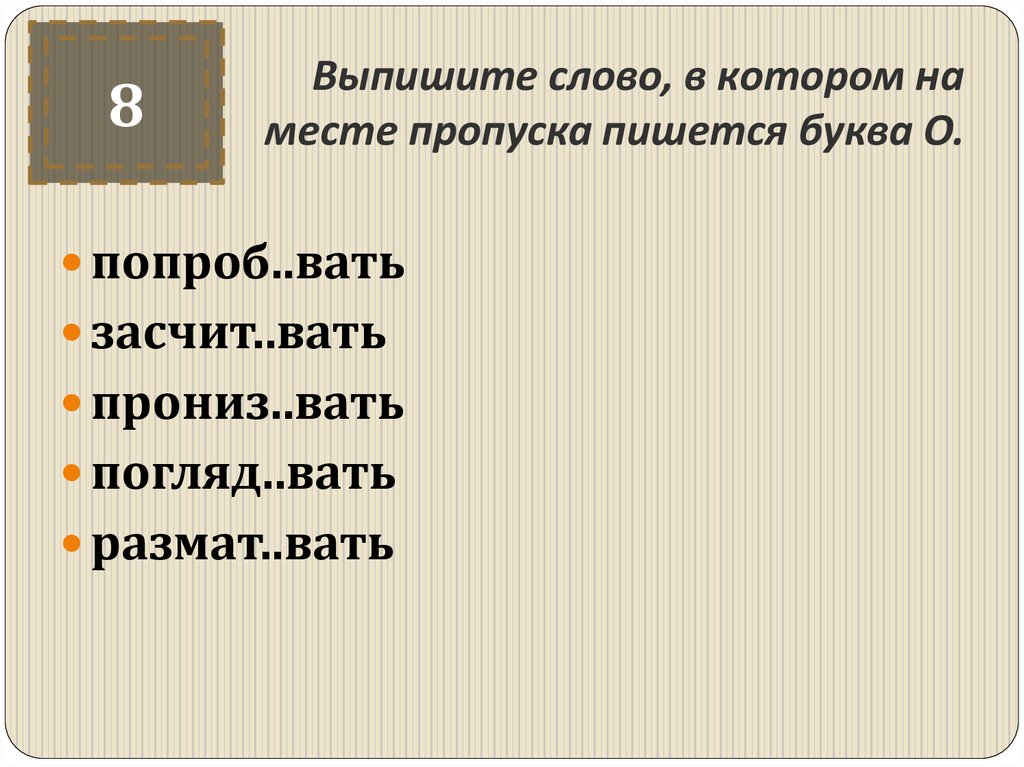 8Выпишите слово, в котором на