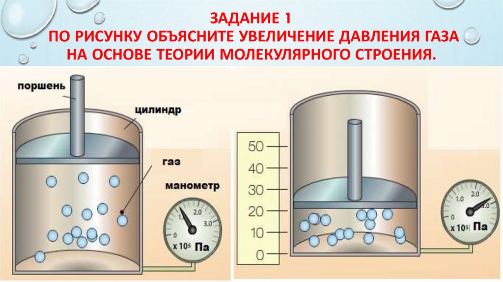 ЗАДАНИЕ 1ПО РИСУНКУ ОБЪЯСНИТЕ УВЕЛИЧЕНИЕ ДАВЛЕНИЯ ГАЗА