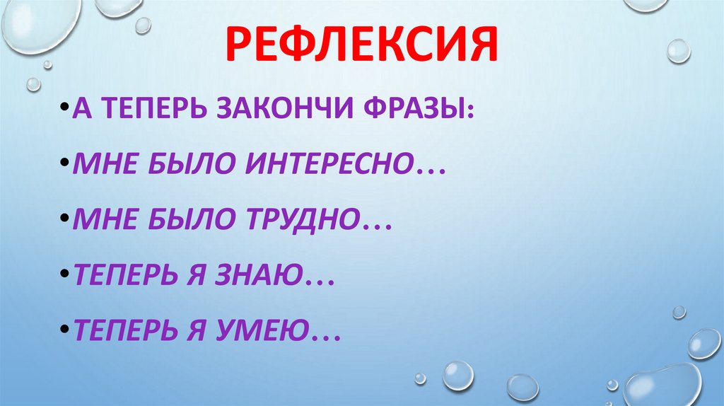 РЕФЛЕКСИЯ•А ТЕПЕРЬ ЗАКОНЧИ ФРАЗЫ: