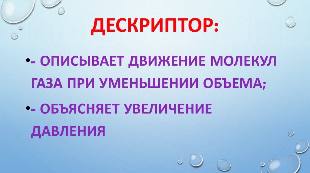 ДЕСКРИПТОР:•- ОПИСЫВАЕТ ДВИЖЕНИЕ МОЛЕКУЛ