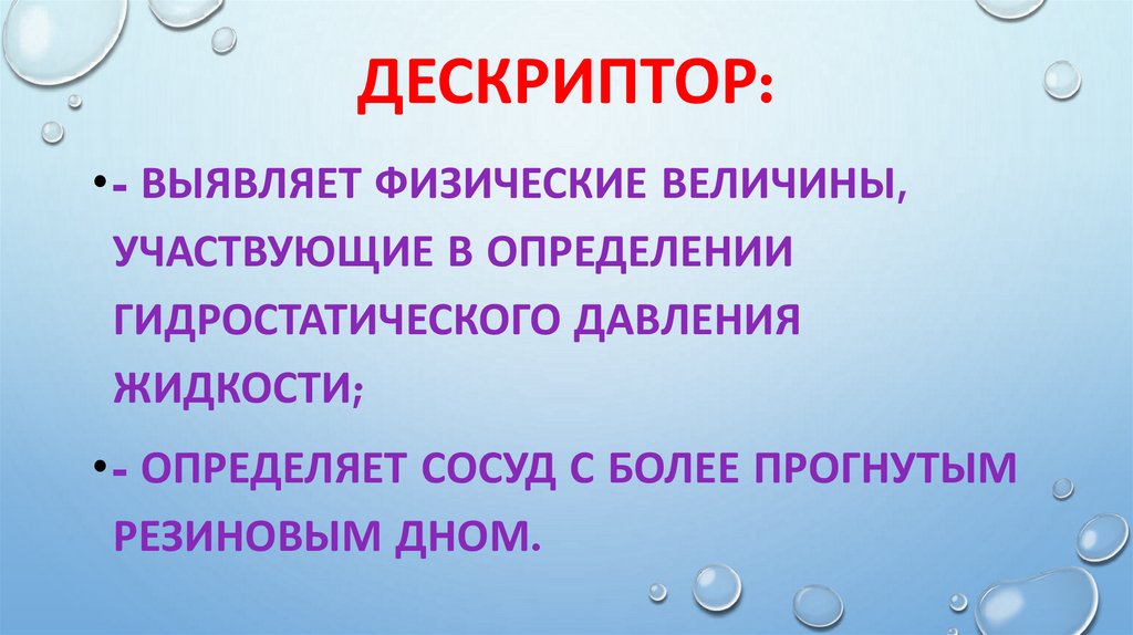 ДЕСКРИПТОР:• - ВЫЯВЛЯЕТ ФИЗИЧЕСКИЕ ВЕЛИЧИНЫ,