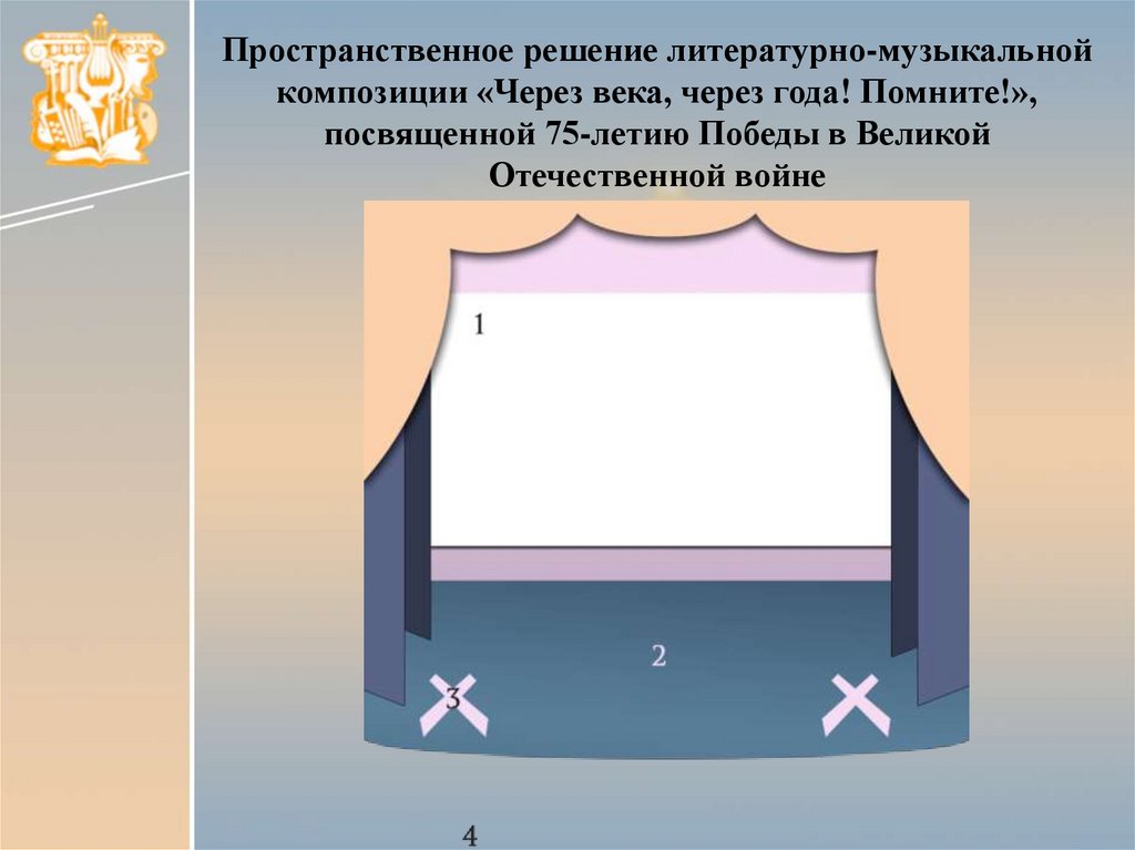 Пространственное решение литературно-музыкальнойкомпозиции «Через века, через года! Помните!»,