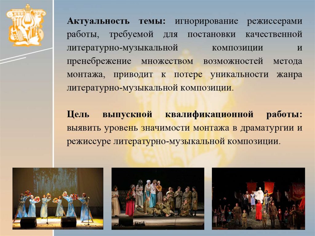 Глава II. Воплощение методамонтажа в режиссуре литературномузыкальной композиции