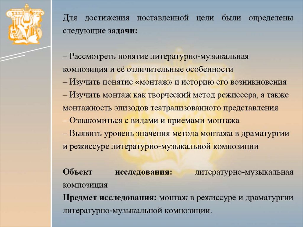 определены следующие задачи: