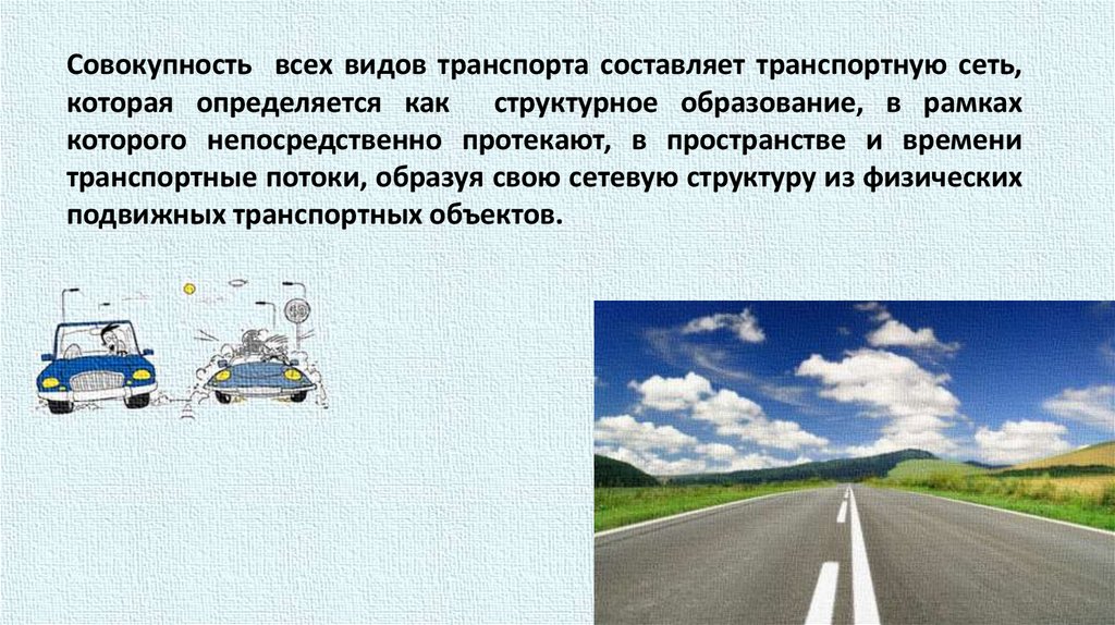Совокупность всех видов транспорта составляет транспортную сеть,которая определяется как структурное образование, в рамках