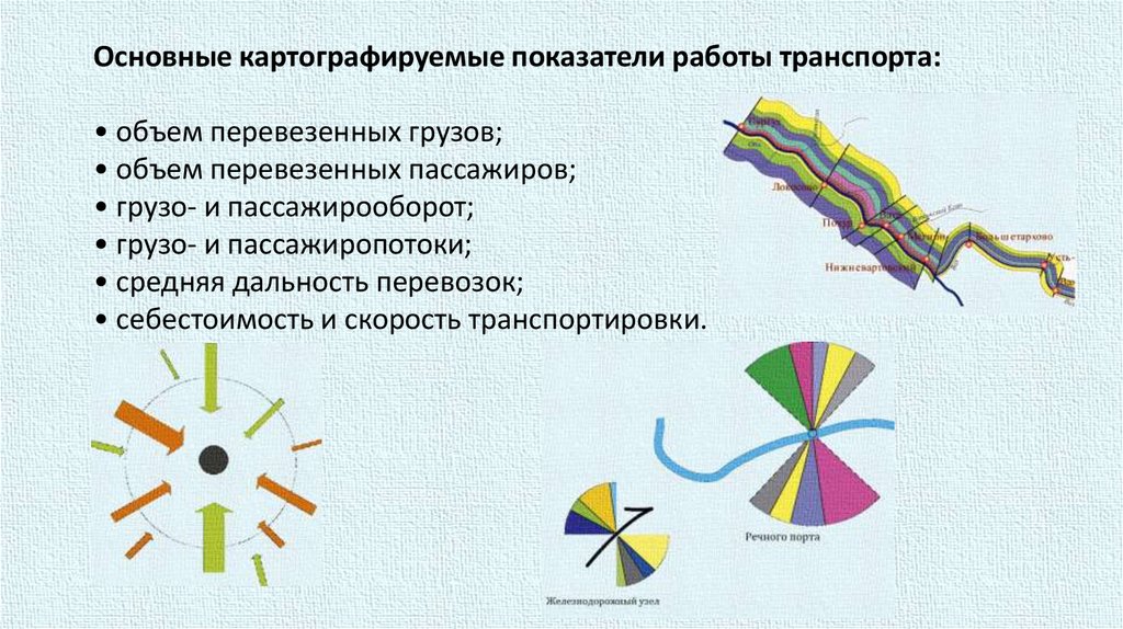 Основные картографируемые показатели работы транспорта:• объем перевезенных грузов;