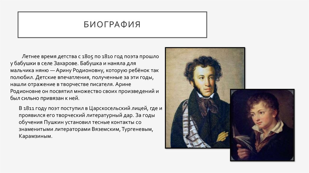 БИОГРАФИЯЛетнее время детства с 1805 по 1810 год поэта прошло