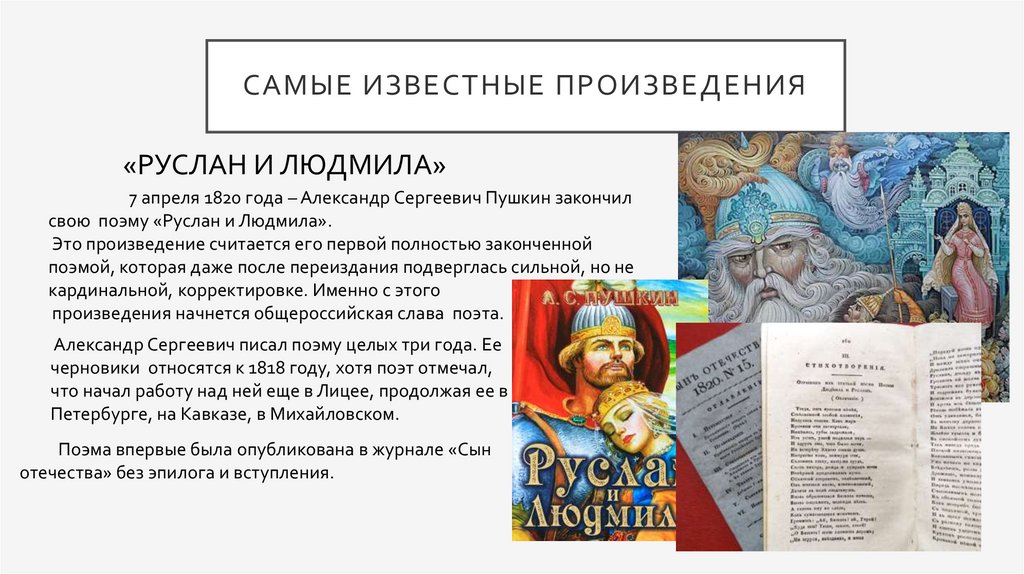 САМЫЕ ИЗВЕСТНЫЕ ПРОИЗВЕДЕНИЯ«РУСЛАН И ЛЮДМИЛА»