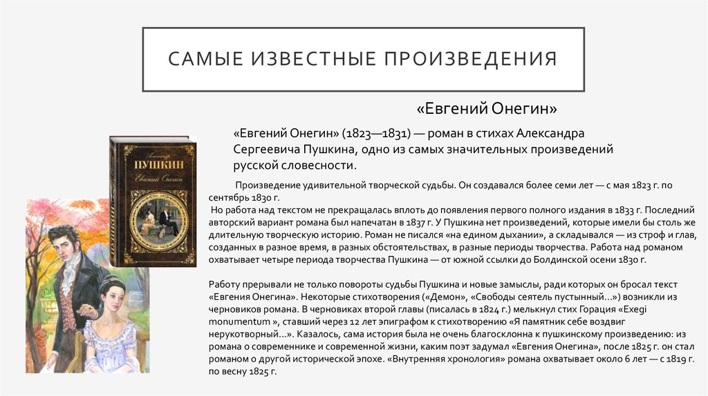 САМЫЕ ИЗВЕСТНЫЕ ПРОИЗВЕДЕНИЯ«Евгений Онегин»