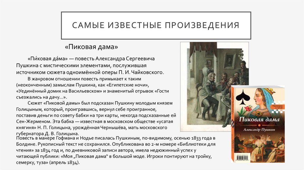САМЫЕ ИЗВЕСТНЫЕ ПРОИЗВЕДЕНИЯ«Пиковая дама»