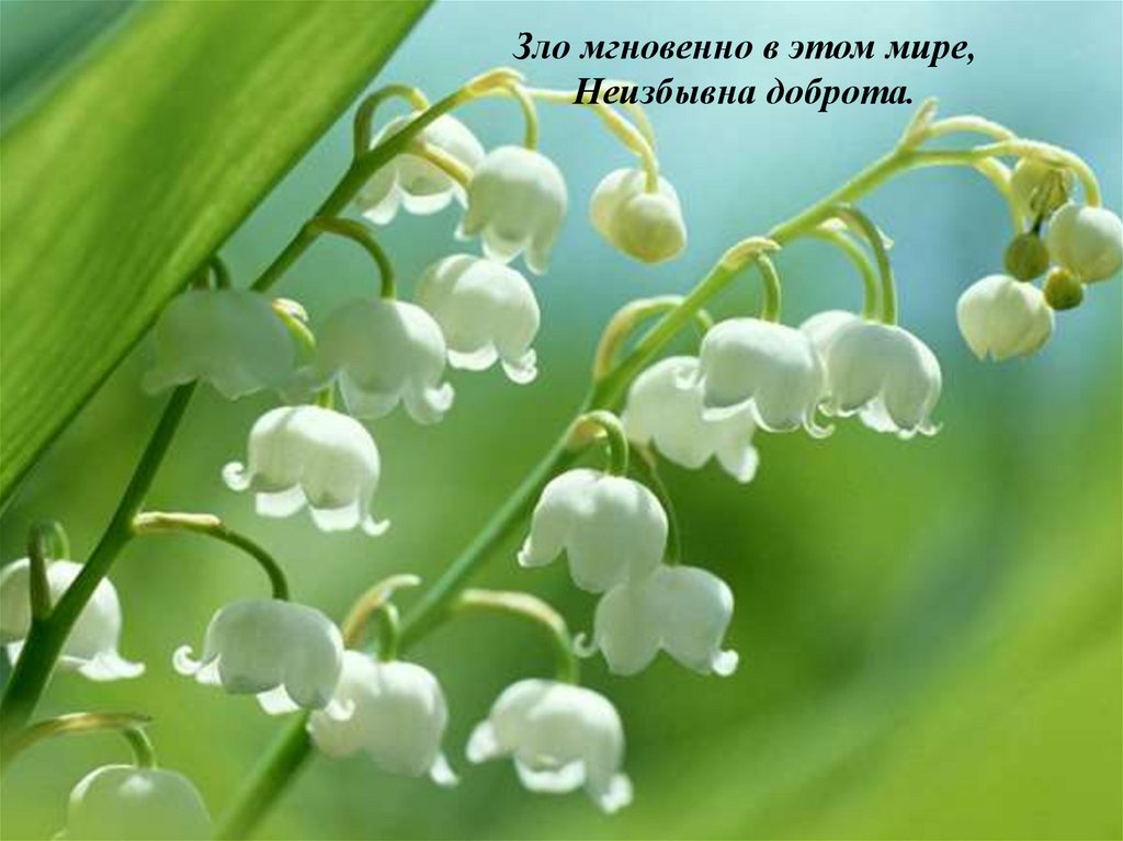 Зло мгновенно в этом мире,Неизбывна доброта.