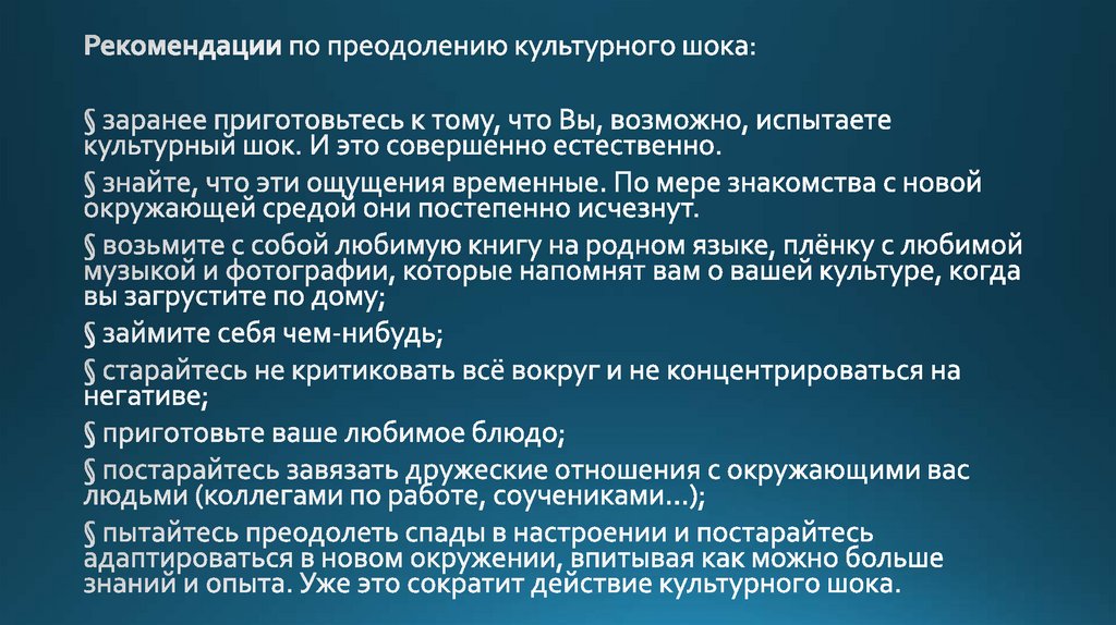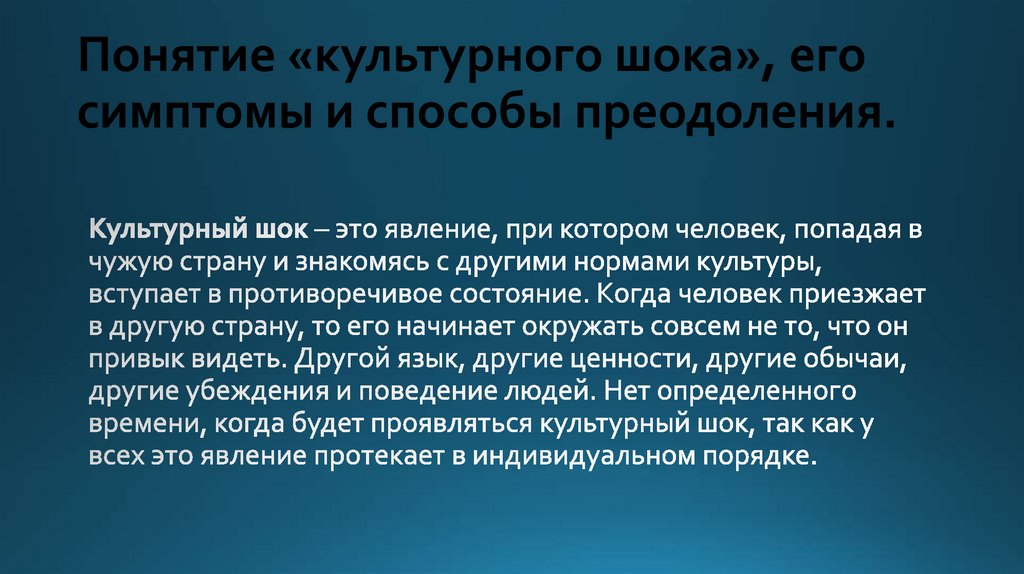 Понятие «культурного шока», егосимптомы и способы преодоления.