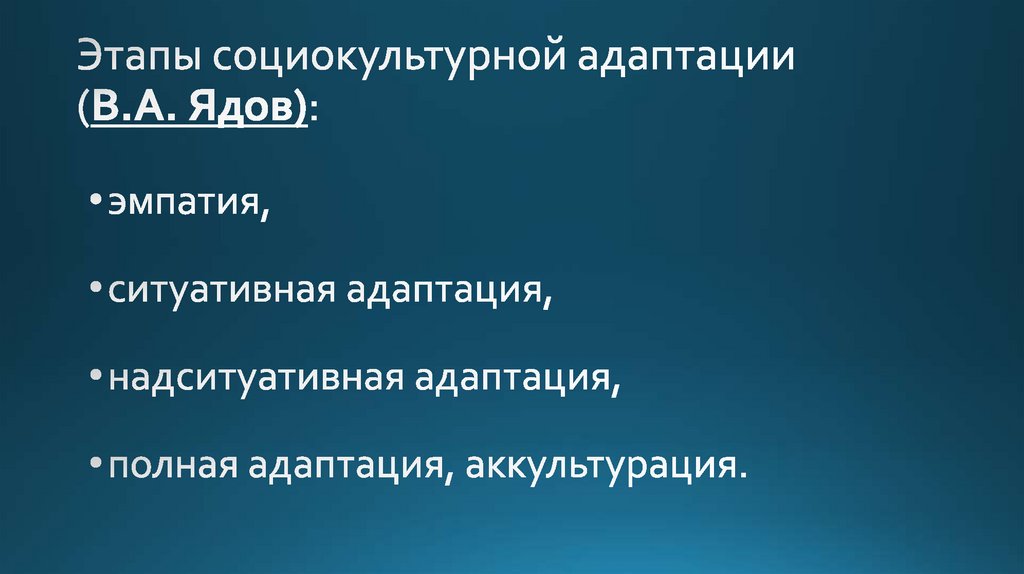 Социокультурная адаптация: понятие, этапы,психологические способы оптимизации.