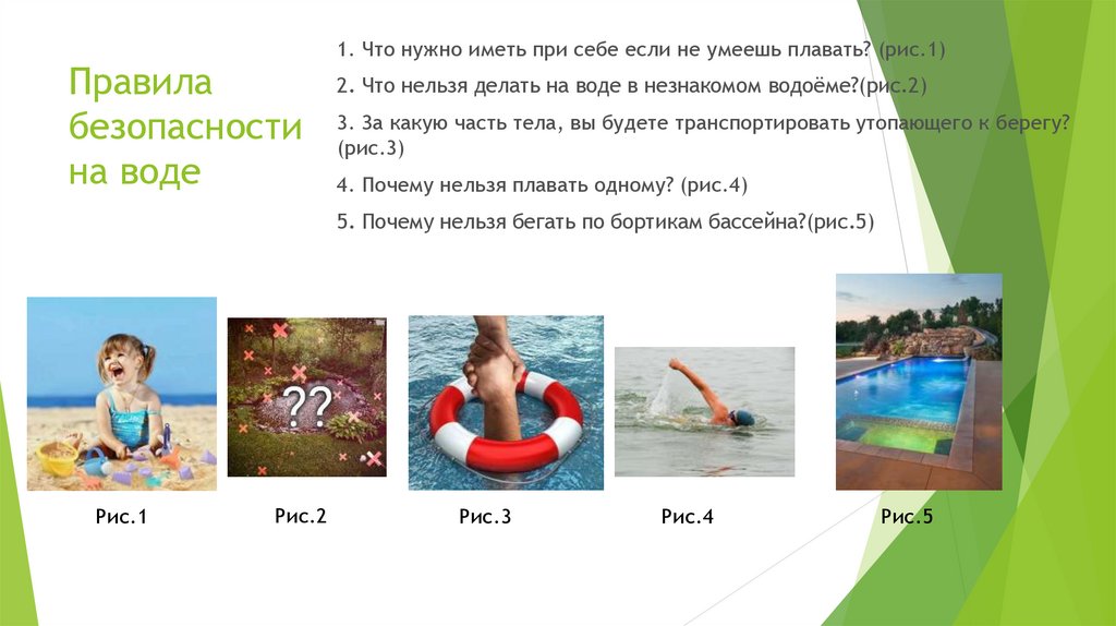 1. Что нужно иметь при себе если не умеешь плавать? (рис.1)