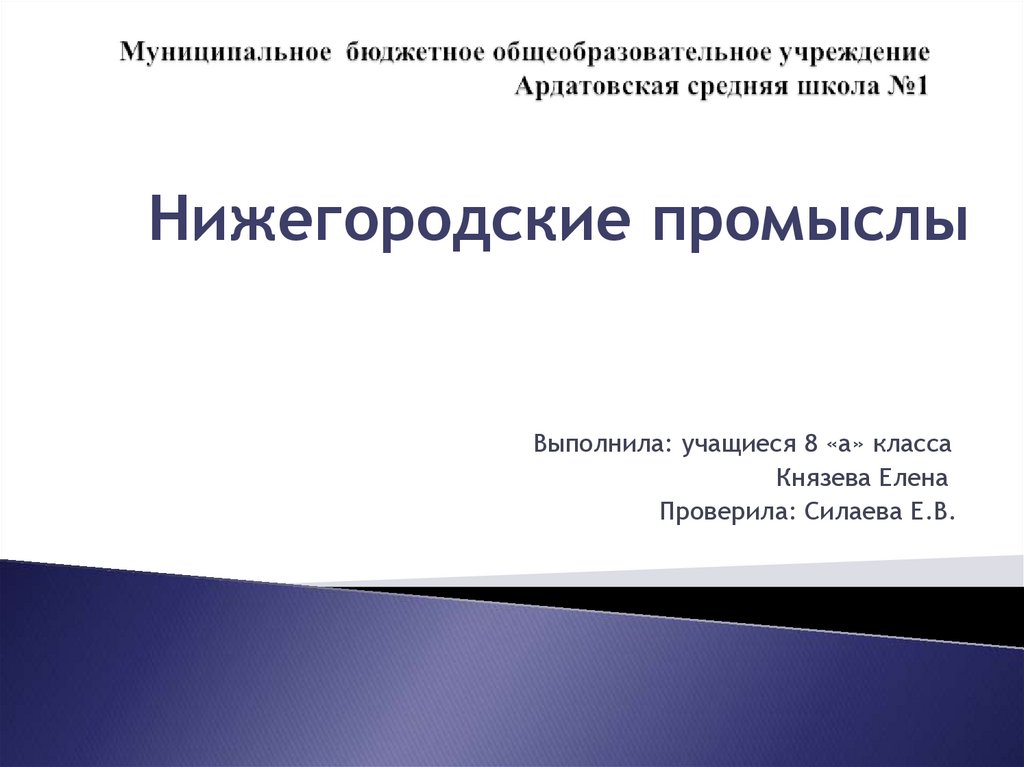 Нижегородские промыслыВыполнила: учащиеся 8 «а» класса