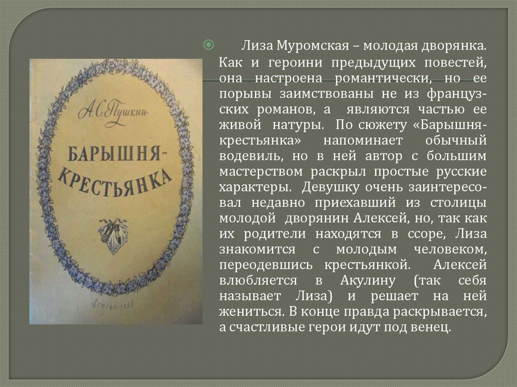 Лиза Муромская – молодая дворянка.Как и героини предыдущих повестей,