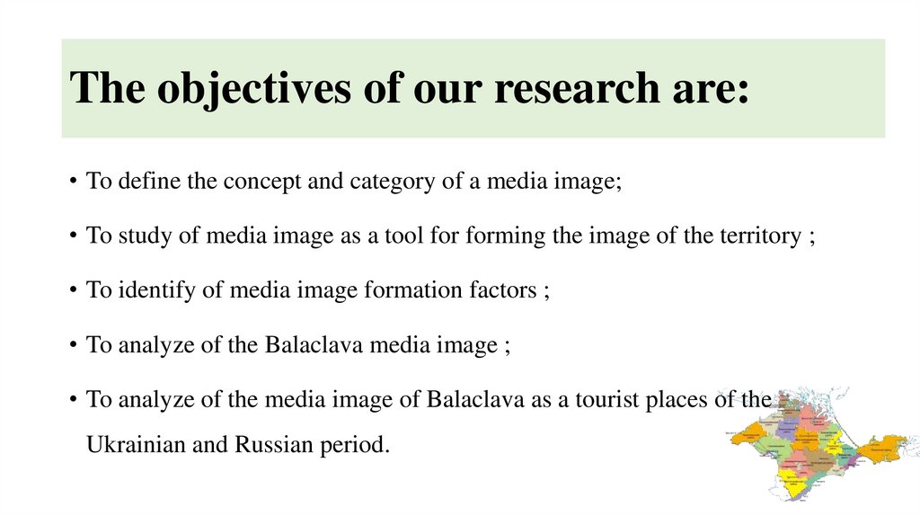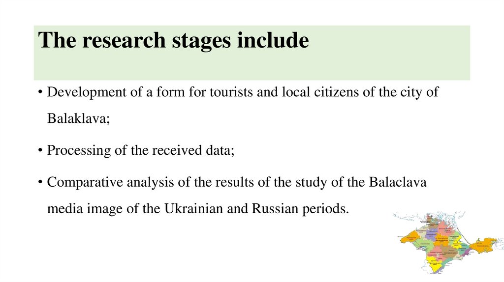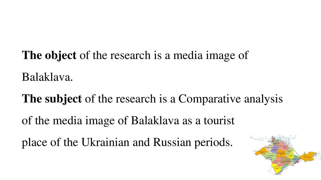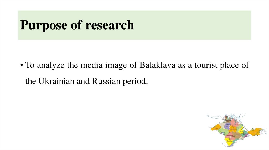 Purpose of research• To analyze the media image of Balaklava as a tourist place of