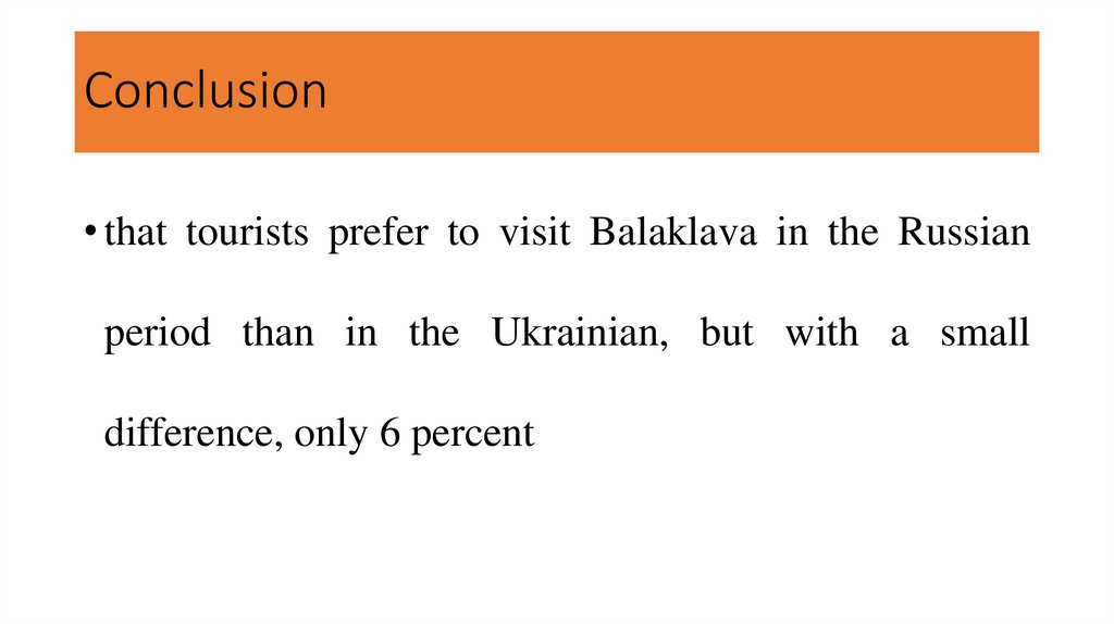 Conclusion• that tourists prefer to visit Balaklava in the Russian