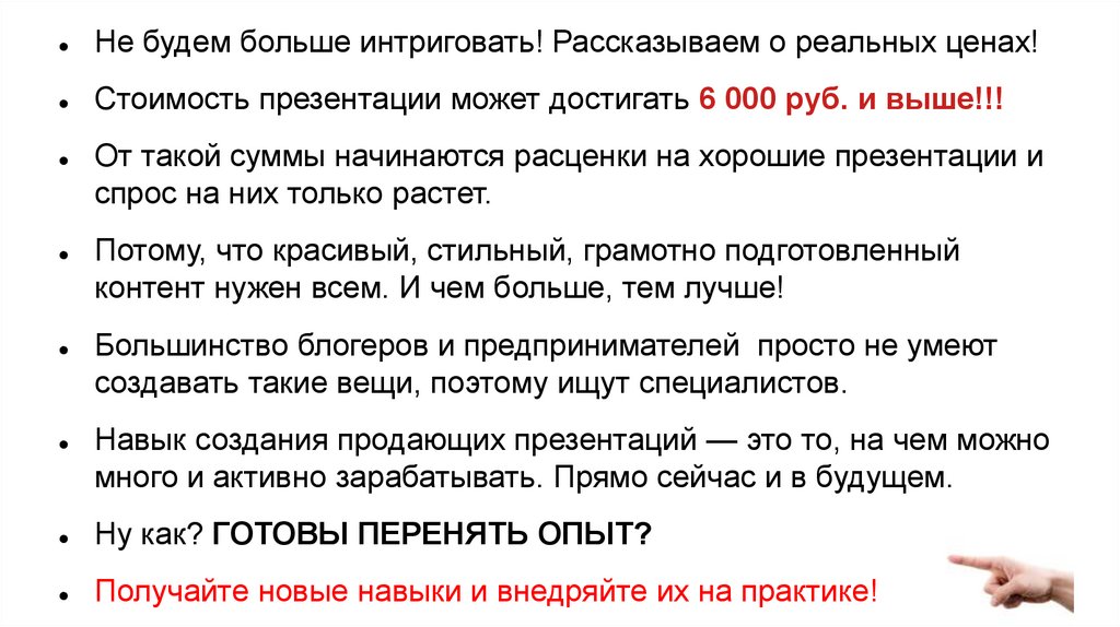 Не будем больше интриговать! Рассказываем о реальных ценах!Стоимость презентации может достигать 6 000 руб. и выше!!!