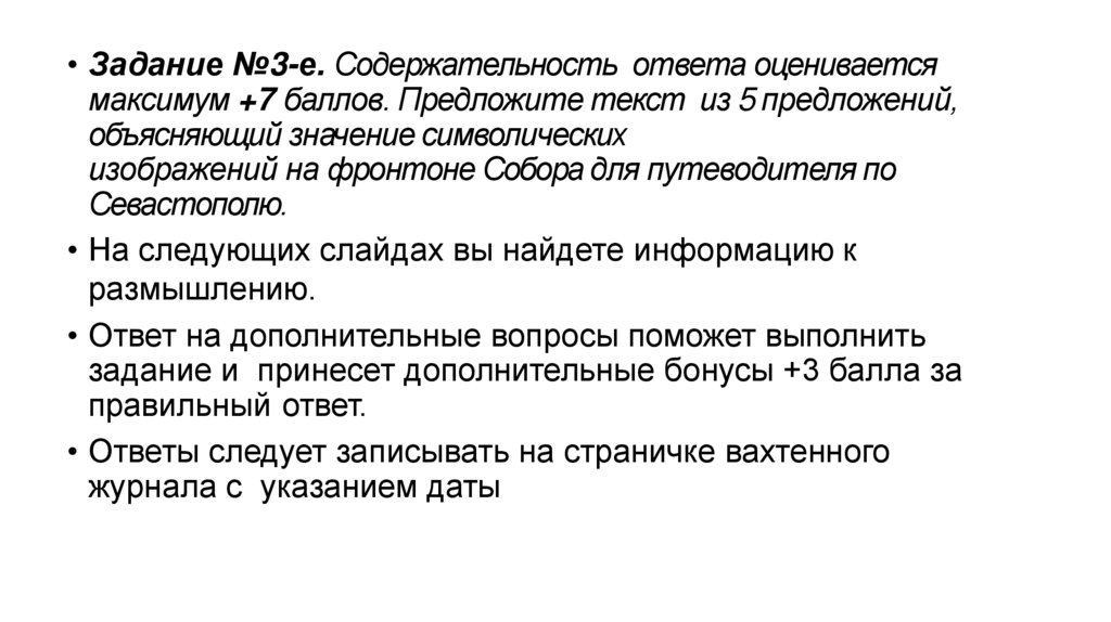 • Задание №3-е. Содержательностьответа оценивается максимум +5 баллов.