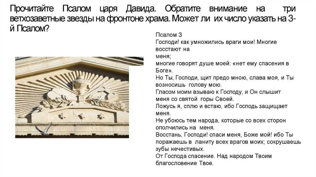 ветхозаветные звезды на фронтоне храма. Может ли их число указать на 3й Псалом?