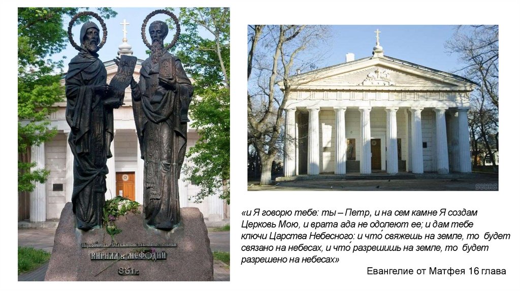 «и Я говорю тебе: ты – Петр, и на сем камне Я создамЦерковь Мою, и врата ада не одолеют ее; и дам тебе