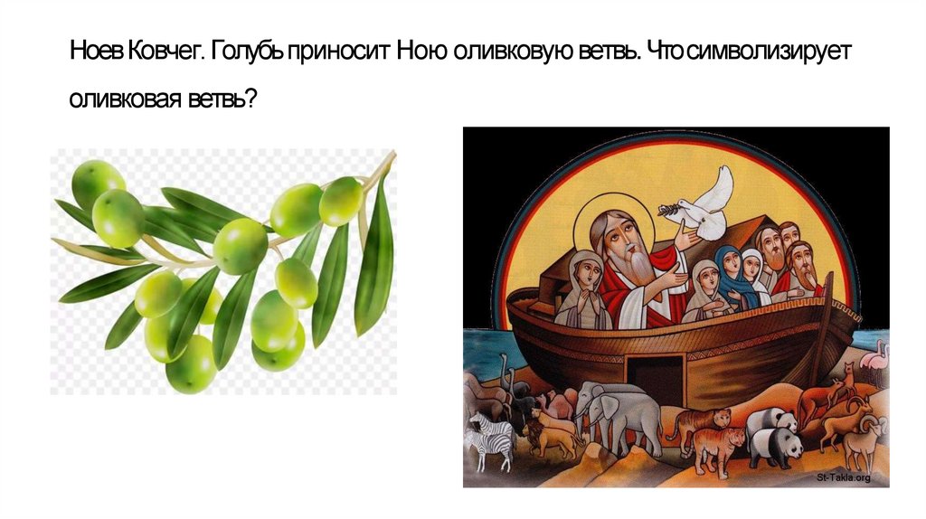 Ноев Ковчег. Голубь приносит Ною оливковую ветвь. Что символизируетоливковая ветвь?