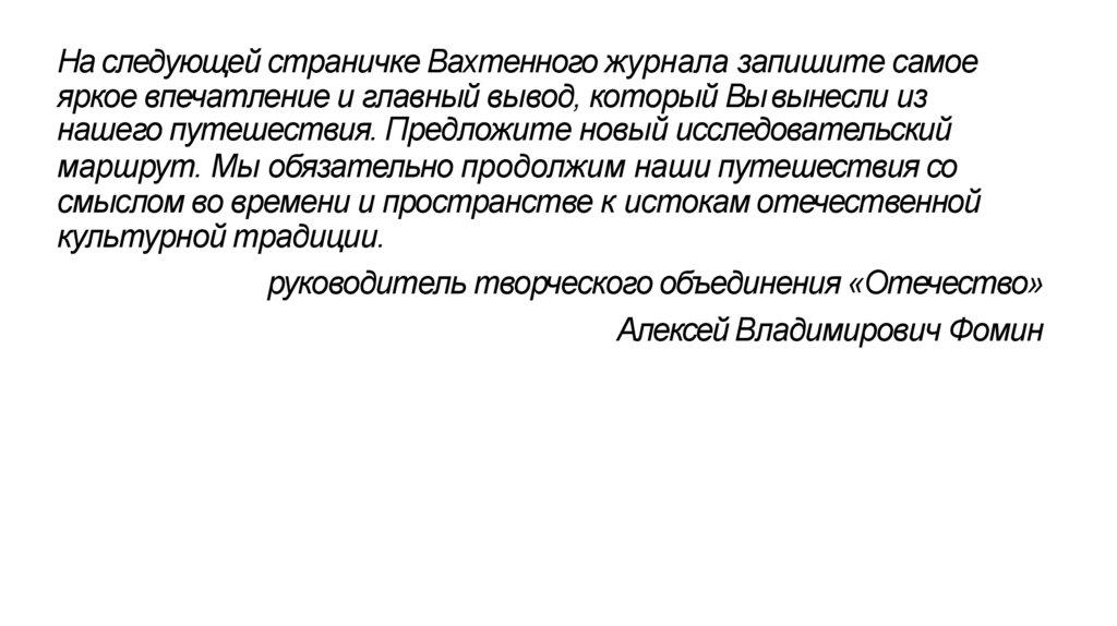 На следующей страничке Вахтенного журнала запишите самоеяркое впечатление и главный вывод, который Вы вынесли из