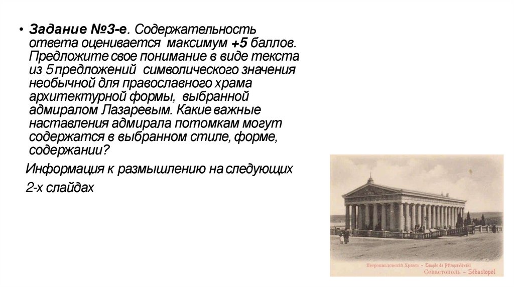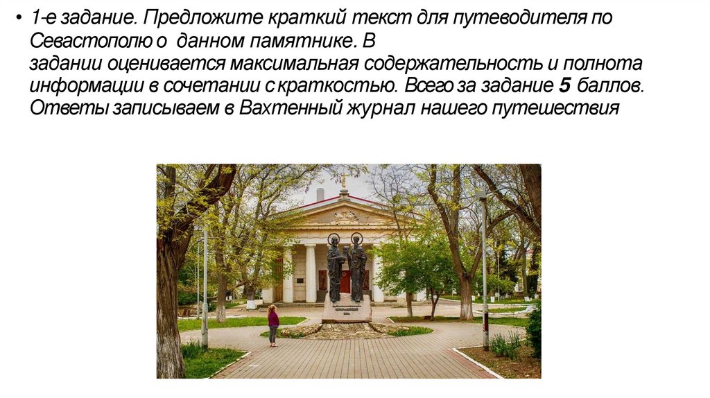 • 1-е задание. Предложите краткий текст для путеводителя поСевастополю о данном памятнике. В