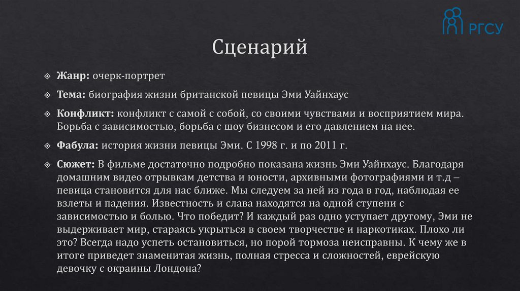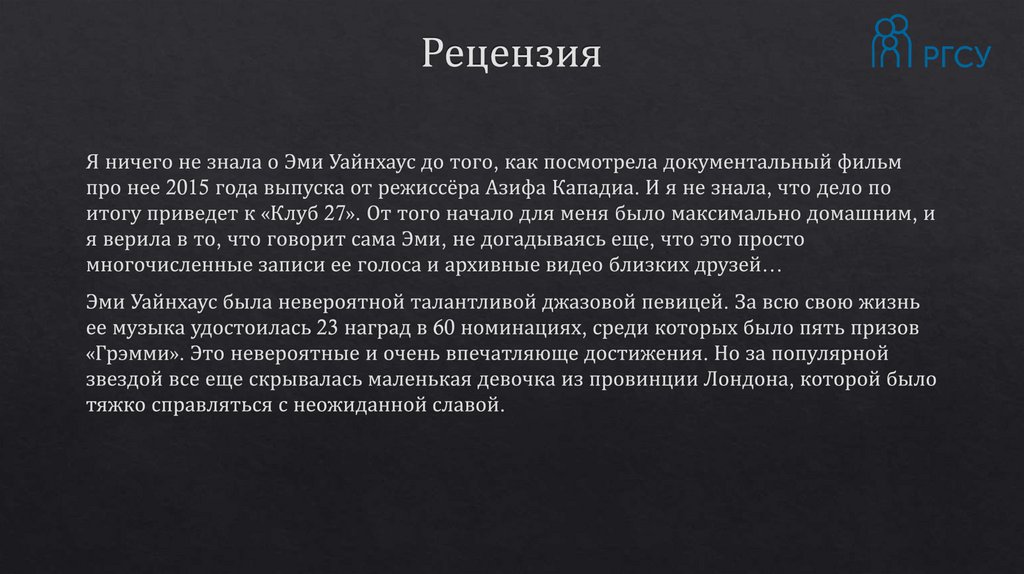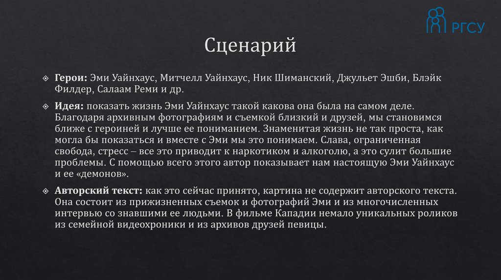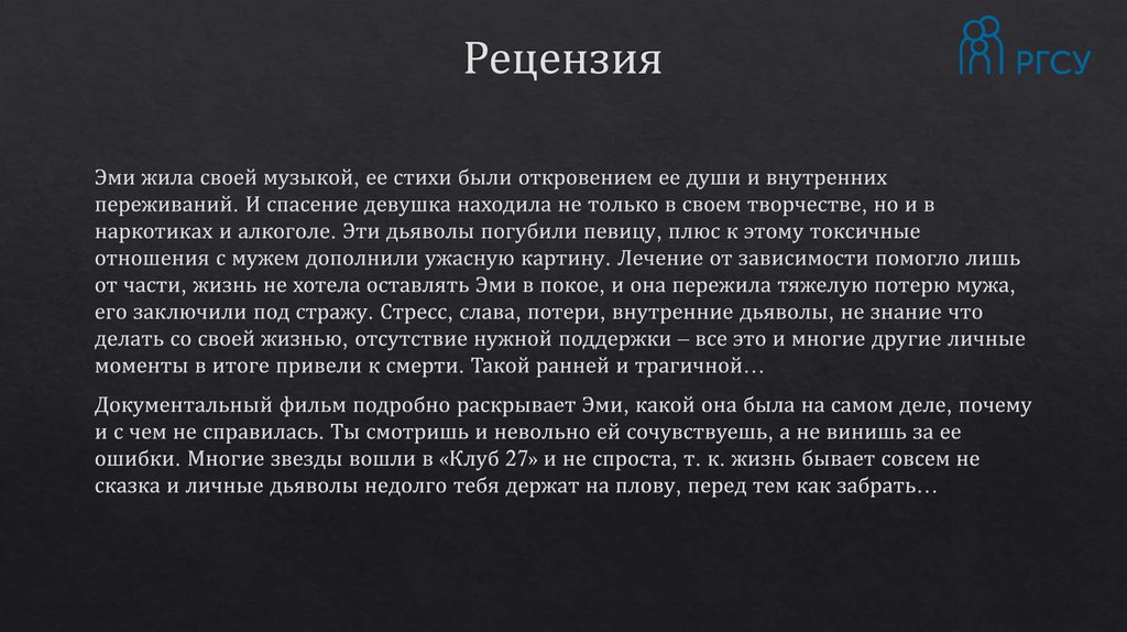 Разбор фильма "Эми". Моисеева А.А