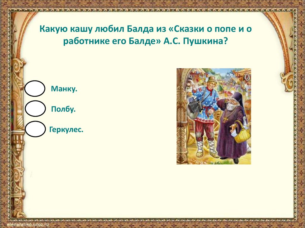 Какую кашу любил Балда из «Сказки о попе и оработнике его Балде» А.С. Пушкина?