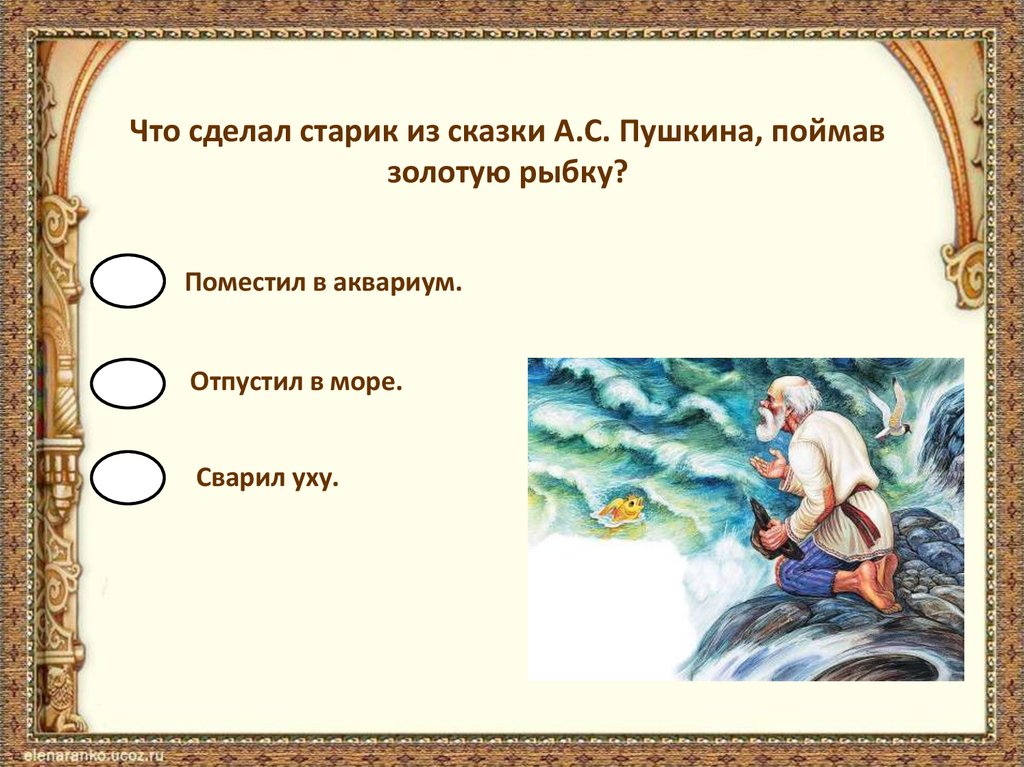 Что сделал старик из сказки А.С. Пушкина, поймавзолотую рыбку?