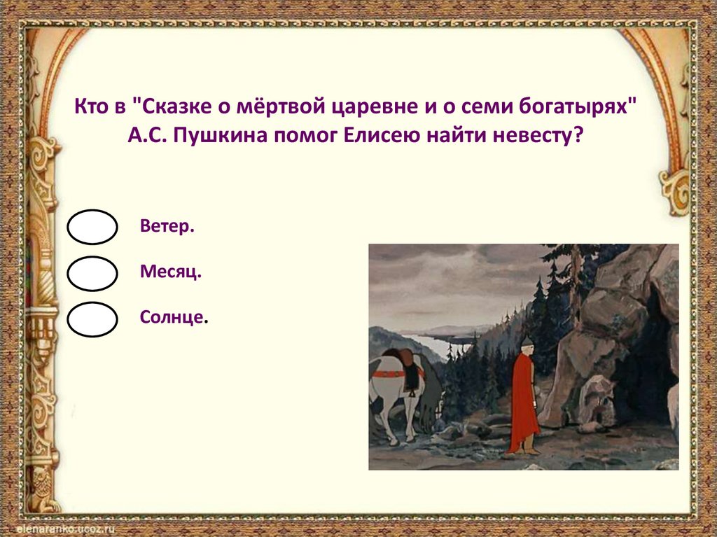 Кто в "Сказке о мёртвой царевне и о семи богатырях"А.С. Пушкина помог Елисею найти невесту?