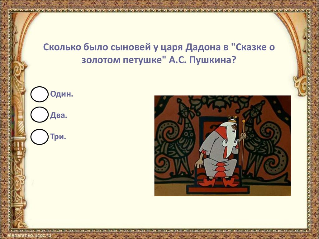 Сколько было сыновей у царя Дадона в "Сказке озолотом петушке" А.С. Пушкина?