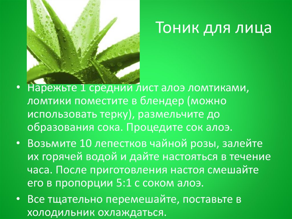 Тоник для лица• Нарежьте 1 средний лист алоэ ломтиками,