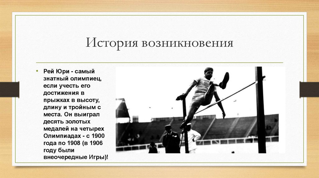нее. Но даже в таких условиях самый знаменитый из старых олимпийцев американец Рей Юри (Ray Ewry) преодолевал в прыжке с места вполне достойную и