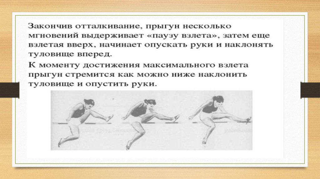 • На последнем шаге прыгун несколько «приседает» и