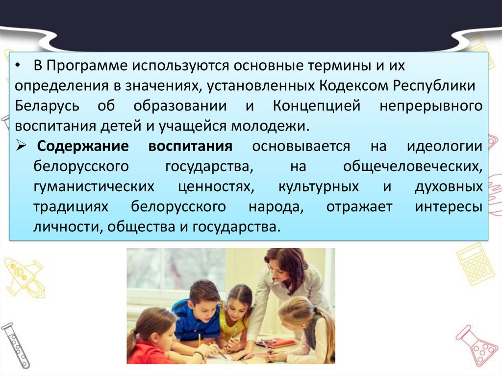 образования Республики Беларусь; определение содержания основных