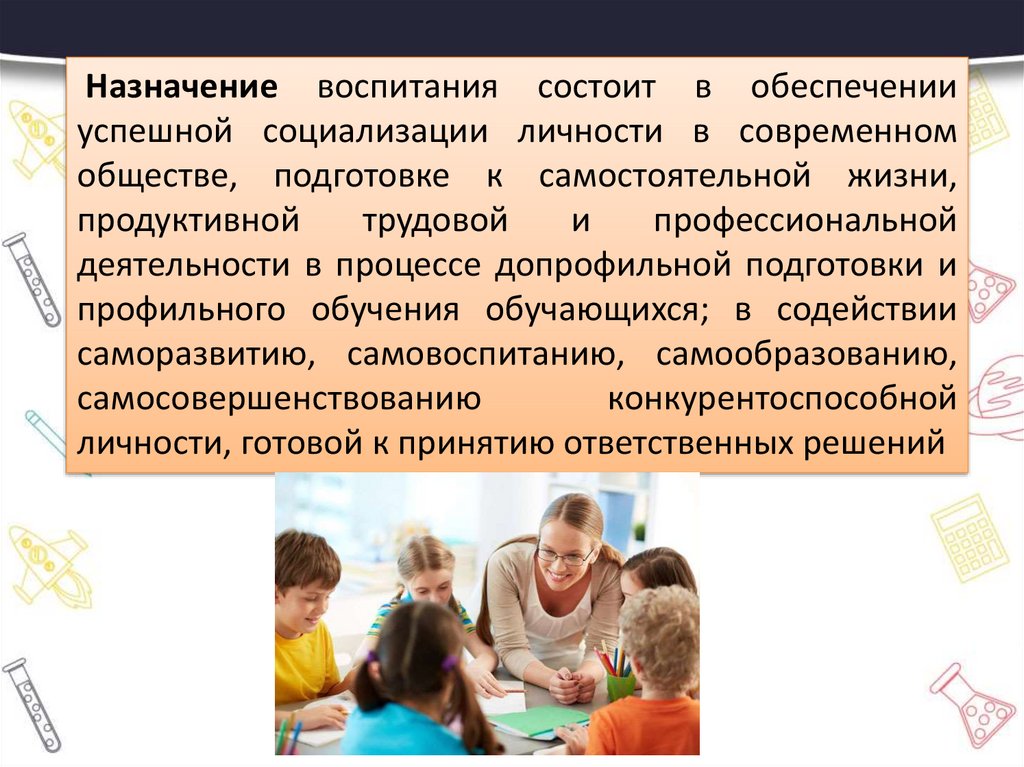 Назначение воспитания состоит в обеспеченииуспешной социализации личности в современном