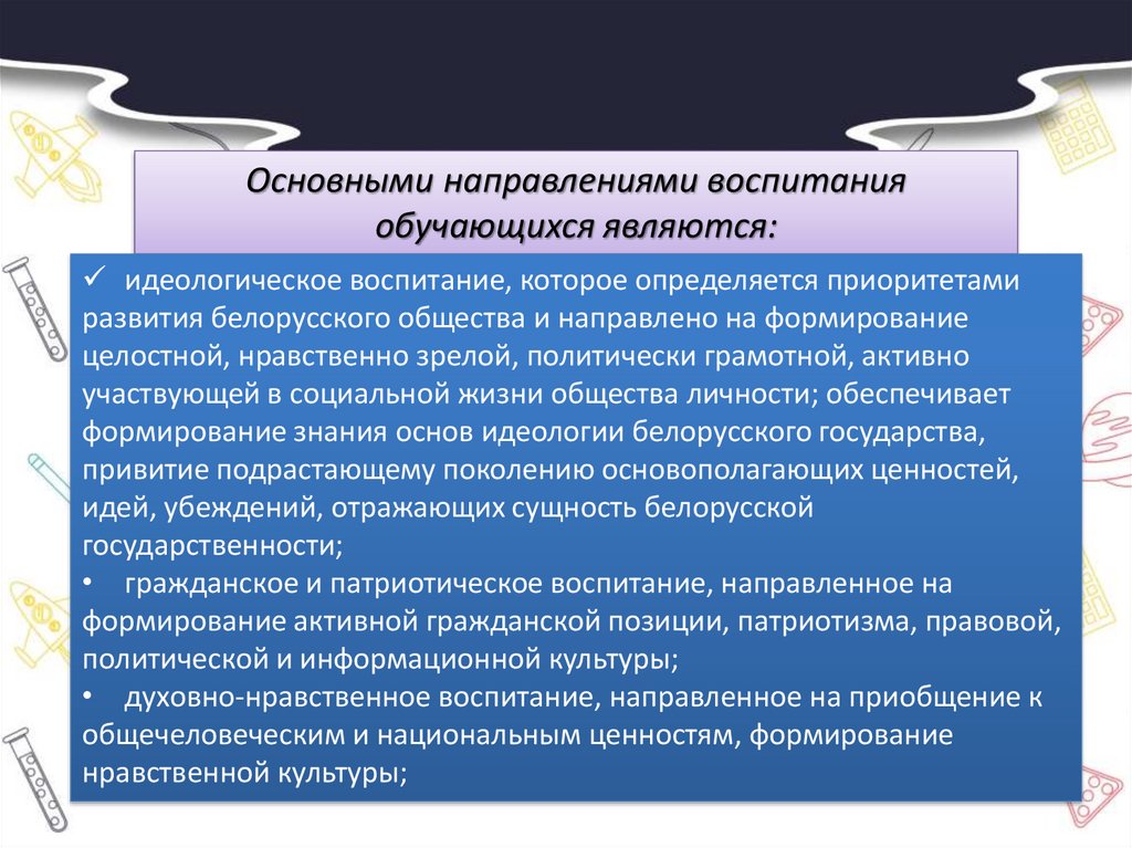 идеологическое воспитание, которое определяется приоритетами