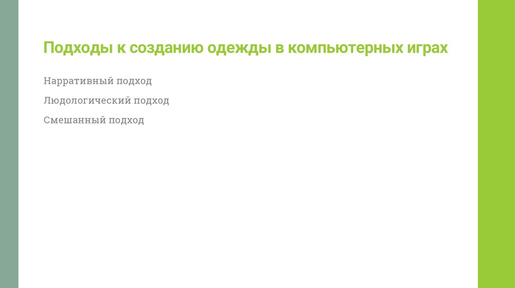 Подходы к созданию одежды в компьютерных играхНарративный подход