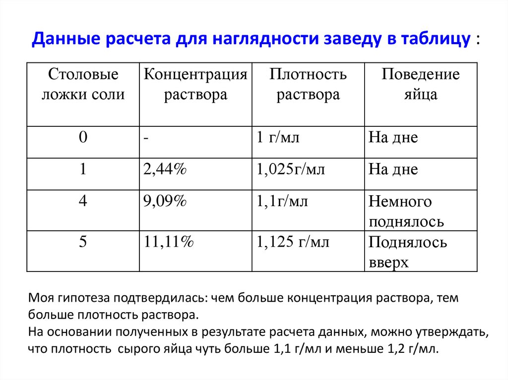 что плотность сырого яйца чуть больше 1,1 г/мл и меньше 1,2 г/мл.