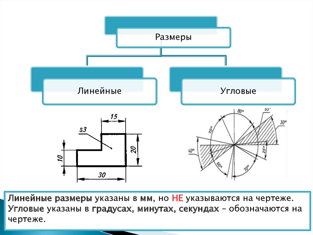 Угловые указаны в градусах, минутах, секундах – обозначаются на
