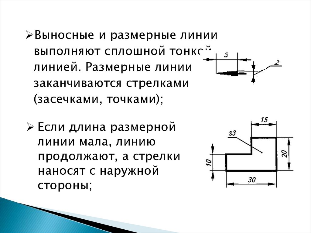 Пересечение выносных и размерныхлиний на чертеже НЕДОПУСТИМО,